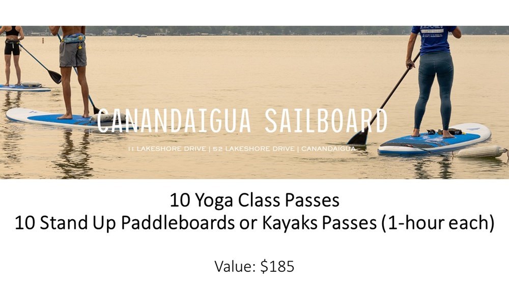 2 Vouchers -10 Yoga Class Passes -10 Stand Up Paddleboards or Kayaks Passes (1-hour each)