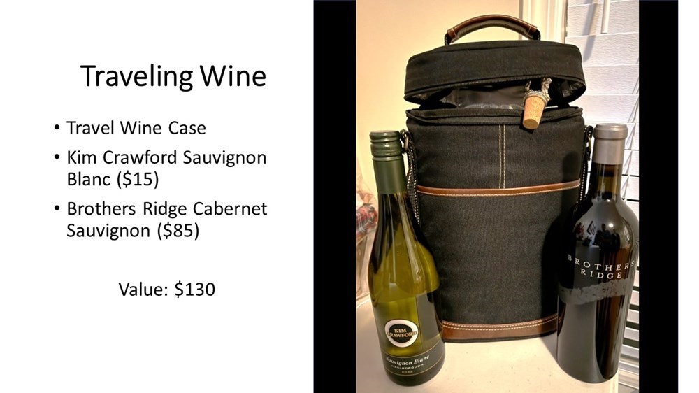 Traveling Wine Basket Includes: -Travel Wine Case -Kim Crawford Sauvignon Blanc ($15) -Brothers Ridge Cabernet Sauvignon ($85)