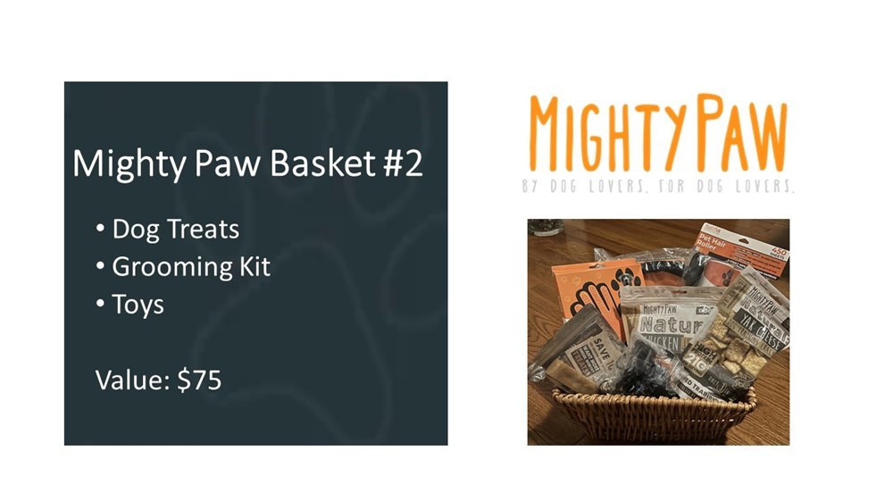 Mighty Paw Dog Basket #2 Includes: -Dog Treats -Grooming Kit -Toys Value: $75